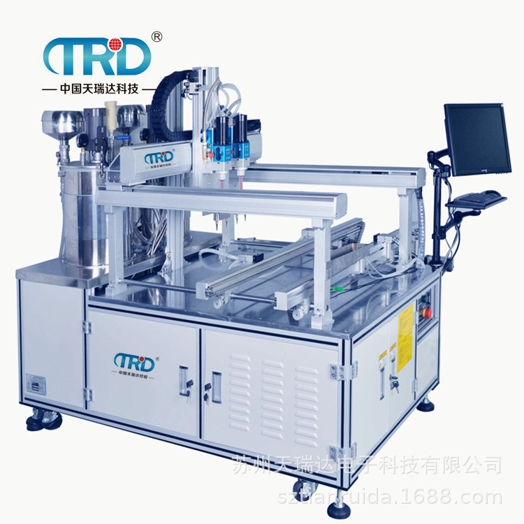 因?yàn)橛媚z量不一樣,膠水包裝不一樣,灌膠機(jī)和點(diǎn)膠機(jī)區(qū)別在機(jī)器設(shè)備形狀上是十分明顯的。點(diǎn)膠機(jī)解決膠水一般選用風(fēng)格的三合一膠筒包裝,不用另裝放料罐,而這針對灌膠機(jī)來講放料罐是標(biāo)準(zhǔn)配置。與此同時,由于解決很多膠水引進(jìn)放料罐,還考慮到膠水的遷移,及其膠水的預(yù)備處理;此外雙組份膠水,必定有混和膠水的作用模塊,及其很有可能的膠水清理作用模塊,這種針對點(diǎn)膠機(jī)是不用的。