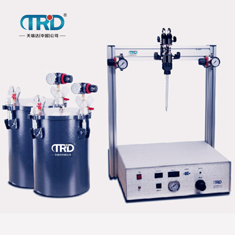 (1)簡(jiǎn)易式灌膠機(jī),組成比較簡(jiǎn)單,兩個(gè)料桶,一個(gè)氣缸,通過氣體的壓力將膠壓出來(lái)混合,一般比例大致為1:1,主要應(yīng)用于一些低端的,對(duì)灌膠工藝要求不是太嚴(yán)格的產(chǎn)品。