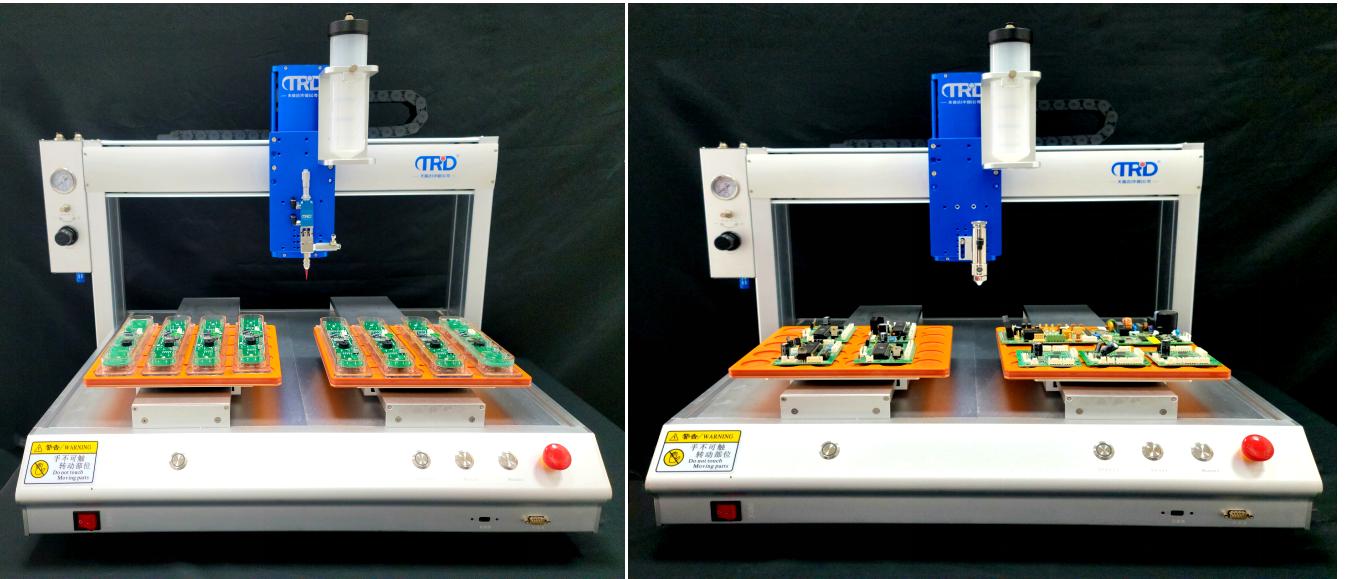 當(dāng)然最近幾年由于技術(shù)的進(jìn)步,點膠機也不再局限于只適用單組份的膠水了,目前天瑞達(dá)點膠機也有很多點膠機能夠?qū)崿F(xiàn)三維、四維路徑點膠,精確定位,精準(zhǔn)控膠,不拉絲,不漏膠,不滴膠,點膠機主要用于產(chǎn)品工藝中的膠水、油漆以及其他液體精確點、注、涂、點滴到每個產(chǎn)品精確位置,可以用來實現(xiàn)打點、畫線、圓型或弧型。