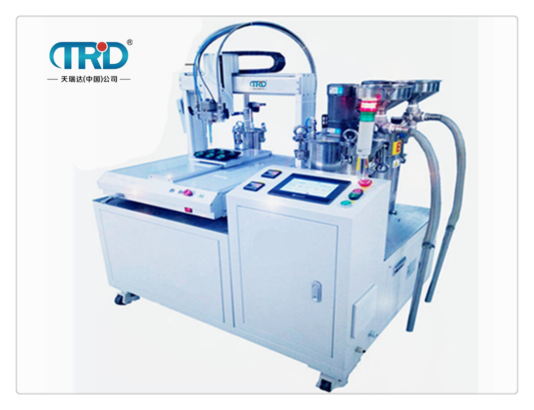 產(chǎn)品介紹TG-VR5510F大膠量自動(dòng)灌膠機(jī)可對(duì)各種工件進(jìn)行灌注工藝等。具有點(diǎn)、線、面、弧、圓及三軸聯(lián)動(dòng)等功能,能適應(yīng)任何不規(guī)則物件灌膠。并可以提升效率,節(jié)省人工,一臺(tái)設(shè)備可達(dá)傳統(tǒng)5-6個(gè)人的產(chǎn)量,獨(dú)有的控制系統(tǒng),不受氣壓因素影響,避免出膠不均、拉絲、氣泡等現(xiàn)象。 產(chǎn)品用途 本機(jī)能適應(yīng)任何不規(guī)則物件灌膠,適用于不同種類的灌注工藝。常用于LED顯示屏灌膠,LED節(jié)能燈灌膠,LED電源灌膠,LED燈條,電腦電源灌膠,繼電器模塊灌膠,傳感器灌膠,PCB板灌膠,太陽(yáng)能電池板灌膠,線圈灌膠等 產(chǎn)品特點(diǎn) ◆ 本機(jī)可由20L原料桶直接供料。也可作原料輸送用。 ◆ 采用容積計(jì)量式往復(fù)泵,可進(jìn)行連續(xù)吐出。 ◆ 由氣動(dòng)馬達(dá)驅(qū)動(dòng),通過(guò)轉(zhuǎn)速調(diào)整吐出速度。 ◆ 中——高粘度時(shí),需安裝加強(qiáng)吸盤式樣 ◆ 采用液晶屏中文操作界面,易學(xué)易懂,可儲(chǔ)存100組灌膠參數(shù); ◆ 灌膠速度、灌膠時(shí)間、停膠時(shí)間皆可參數(shù)設(shè)定、出膠量穩(wěn)定,不漏滴膠; ◆ 具有點(diǎn)、線、面、弧、圓及三軸聯(lián)動(dòng)等功能,能適應(yīng)任何不規(guī)則物件灌膠; ◆ 節(jié)省人工,一臺(tái)設(shè)備可達(dá)傳統(tǒng)5-6個(gè)人的產(chǎn)量;按需配比,實(shí)現(xiàn)邊混合邊灌膠,最大限度節(jié)約膠水; ◆ 雙料桶設(shè)計(jì),A膠和B膠分開(kāi)儲(chǔ)料,保證膠水長(zhǎng)時(shí)間放置不發(fā)生固化; ◆ 獨(dú)有的控制系統(tǒng),不受氣壓因素影響,避免出膠不均、拉絲、氣泡等現(xiàn)象; ◆ 儲(chǔ)料桶配有液位感應(yīng)開(kāi)關(guān),缺料自動(dòng)報(bào)警; ◆ 可選配膠水?dāng)嚢?、加熱并抽真空脫泡功能,適用于不同種類的灌注工藝。