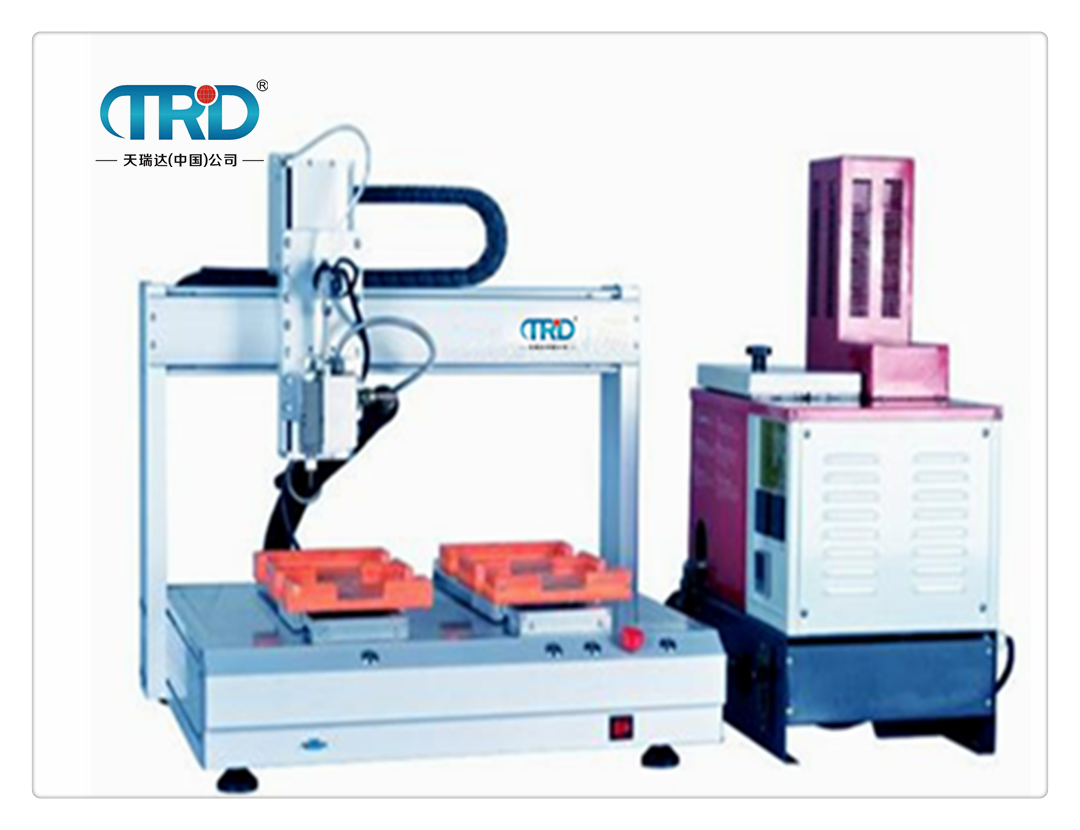 TA-5331RF全自動熱熔點(diǎn)膠機(jī)可對各種工件進(jìn)行自動點(diǎn)膠作業(yè)。解決了人工重復(fù)性點(diǎn)膠動作出現(xiàn)的點(diǎn)膠不均勻等現(xiàn)象。并可以提升效率,節(jié)省人力??商娲斯ぬ囟ǖ狞c(diǎn)膠作業(yè),實(shí)現(xiàn)機(jī)械化生產(chǎn)。自動點(diǎn)膠機(jī)操作簡單,生產(chǎn)效率高、點(diǎn)膠質(zhì)量好、環(huán)保又節(jié)能、初學(xué)者也能達(dá)到熟練工人的點(diǎn)膠效果。本機(jī)采用簡易快速地輸入點(diǎn)膠程序,其軟件并具有強(qiáng)大的編輯功能,可輕易、快速的完成程序教導(dǎo)。