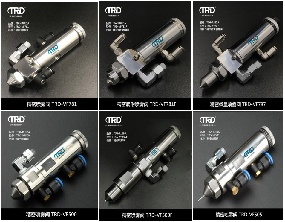 產(chǎn)品介紹TRD-VF500精密噴霧閥用于涂覆、標(biāo)記、粘接和潤滑等, 適用于許多中低粘度流體。是一種將液體變成細(xì)小的水珠,以噴霧形式排出的裝置,能夠可靠地噴涂以微升或毫升計(jì)量的流體。不堵塞,不滴液,不會(huì)變干,不會(huì)過度噴膠,不起霧,不跳躍。可代替人工特定的點(diǎn)膠作業(yè),實(shí)現(xiàn)機(jī)械自動(dòng)化的生產(chǎn),高輸送效率,可極其一致的覆蓋區(qū)域。 產(chǎn)品用途 適用于催化劑、涂層、油脂、液體助焊劑\硅膠、溶劑、記號(hào)墨、油類等流體。 產(chǎn)品特點(diǎn) ◆ 高輸送效率,極其一致的覆蓋區(qū)域 ◆ 能夠可靠地噴涂以微升或毫升計(jì)量的流體。不堵塞,不滴液,不會(huì)變干,不會(huì)過度噴膠,不起霧,不跳躍 ● 可調(diào)節(jié)的噴嘴壓力