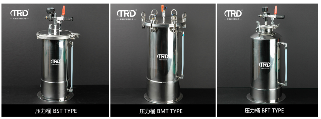 產(chǎn)品介紹BFT TYPE壓力桶專業(yè)用在大點膠量的場合,對保持點膠閥系統(tǒng)點膠的精確度非常重要。每個液料壓力桶都配有精密恒壓調(diào)壓閥,維持從壓力桶至點膠閥的流體壓力。液料壓力筒的開關是簡單的夾緊方式,結構上內(nèi)部面和下部面相同,可以使用內(nèi)部容器。使用時可將膠水原包裝直接放入桶內(nèi),用完無需清洗,維護方便