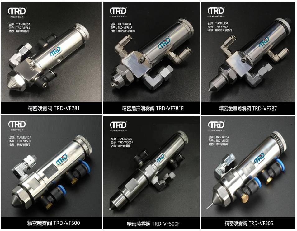 產(chǎn)品介紹TRD-VF781精密噴霧閥用于涂覆、標(biāo)記、粘接和潤滑等, 適用于許多中低粘度流體。是一種將液體變成細(xì)小的水珠,以噴霧形式排出的裝置,能夠可靠地噴涂以微升或毫升計(jì)量的流體。不堵塞,不滴液,不會變干,不會過度噴膠,不起霧,不跳躍。可代替人工特定的點(diǎn)膠作業(yè),實(shí)現(xiàn)機(jī)械自動化的生產(chǎn),高輸送效率,可極其一致的覆蓋區(qū)域。 產(chǎn)品用途 適用于催化劑、涂層、油脂、液體助焊劑\硅膠、溶劑、記號墨、油類等流體。 產(chǎn)品特點(diǎn) ◆ 高輸送效率,極其一致的覆蓋區(qū)域 ◆ 能夠可靠地噴涂以微升或毫升計(jì)量的流體。不堵塞,不滴液,不會變干,不會過度噴膠,不起霧,不跳躍 ● 可調(diào)節(jié)的噴嘴壓力